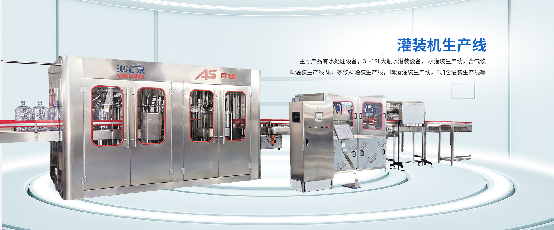 公司主導(dǎo)產(chǎn)品有水處理設(shè)備,3L-18L大瓶水灌裝機(jī)設(shè)備, 水灌裝生產(chǎn)線,含氣飲料灌裝生產(chǎn)線, 果汁茶飲料灌裝生產(chǎn)線, 啤酒灌裝生產(chǎn)線,5加侖灌裝生產(chǎn)線等。能夠配套整個(gè)生產(chǎn)線